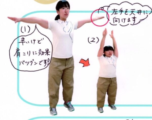 ※腕を上げ続けるのがつらい場合は、途中で休憩してOK