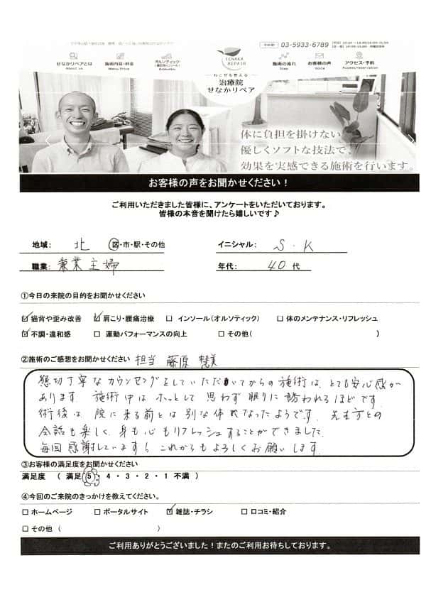 筋力を増やさないと持続的な改善には至らない思い、通常の施術にオーダーメイドのトレーニングを追加してもらうように所、腰痛改善はもちろん、ウエストも-4.0cmと、嬉しい効果も。